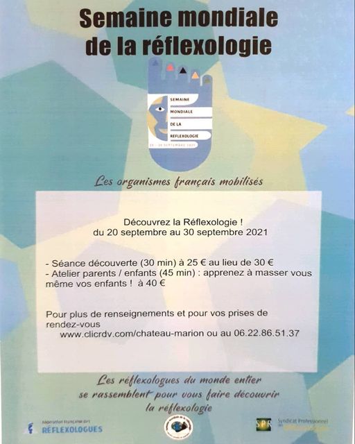 Rendez-vous sur www.clicrdv.com/chateau-marion ou au 06.22.86.51.37 #semainemondialereflexologie#reflexologieplantaire#reflexologieperinatale#reflexologiedienchan#cysoing#pevelecarembault#bienetre#zenattitude